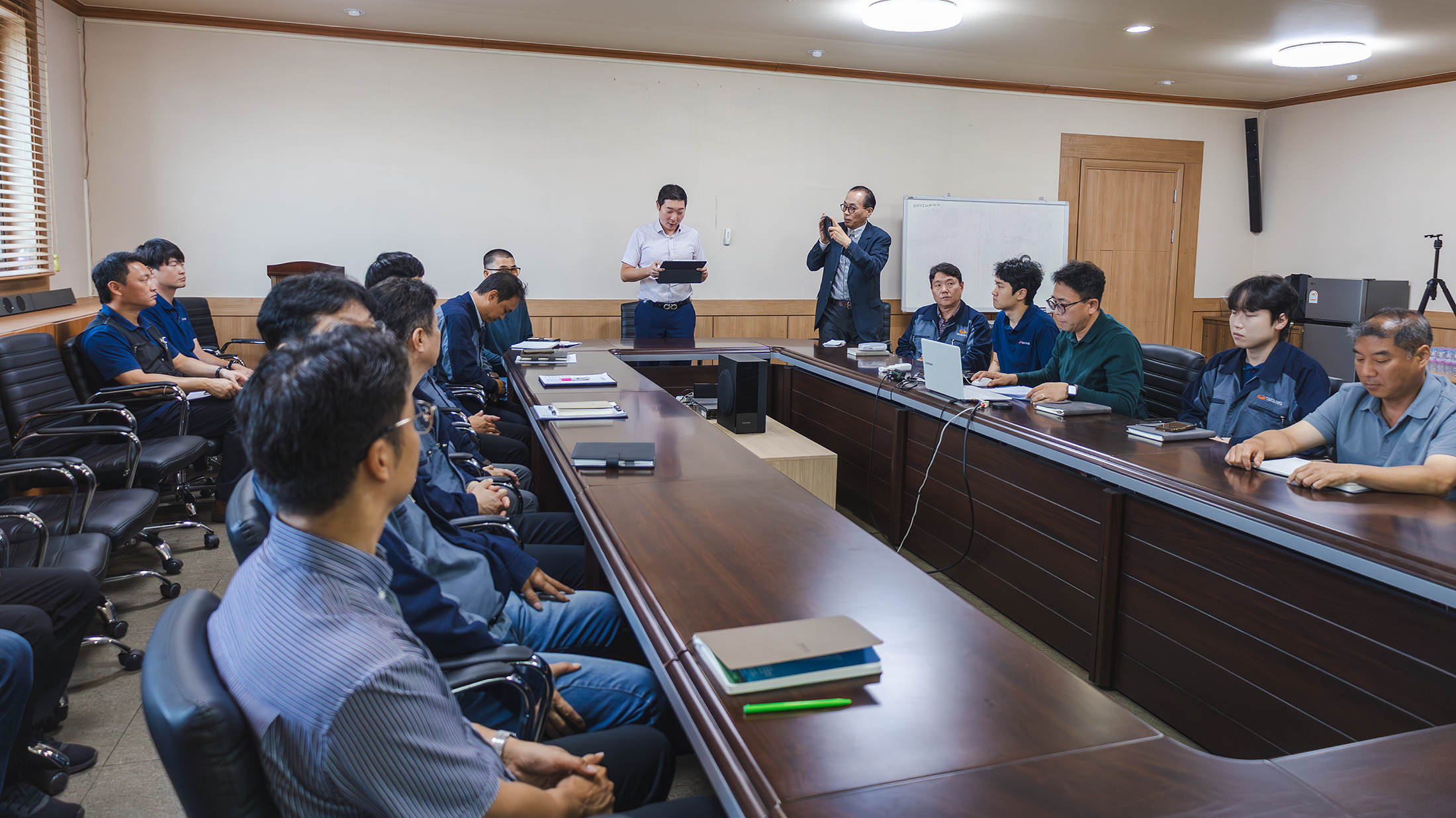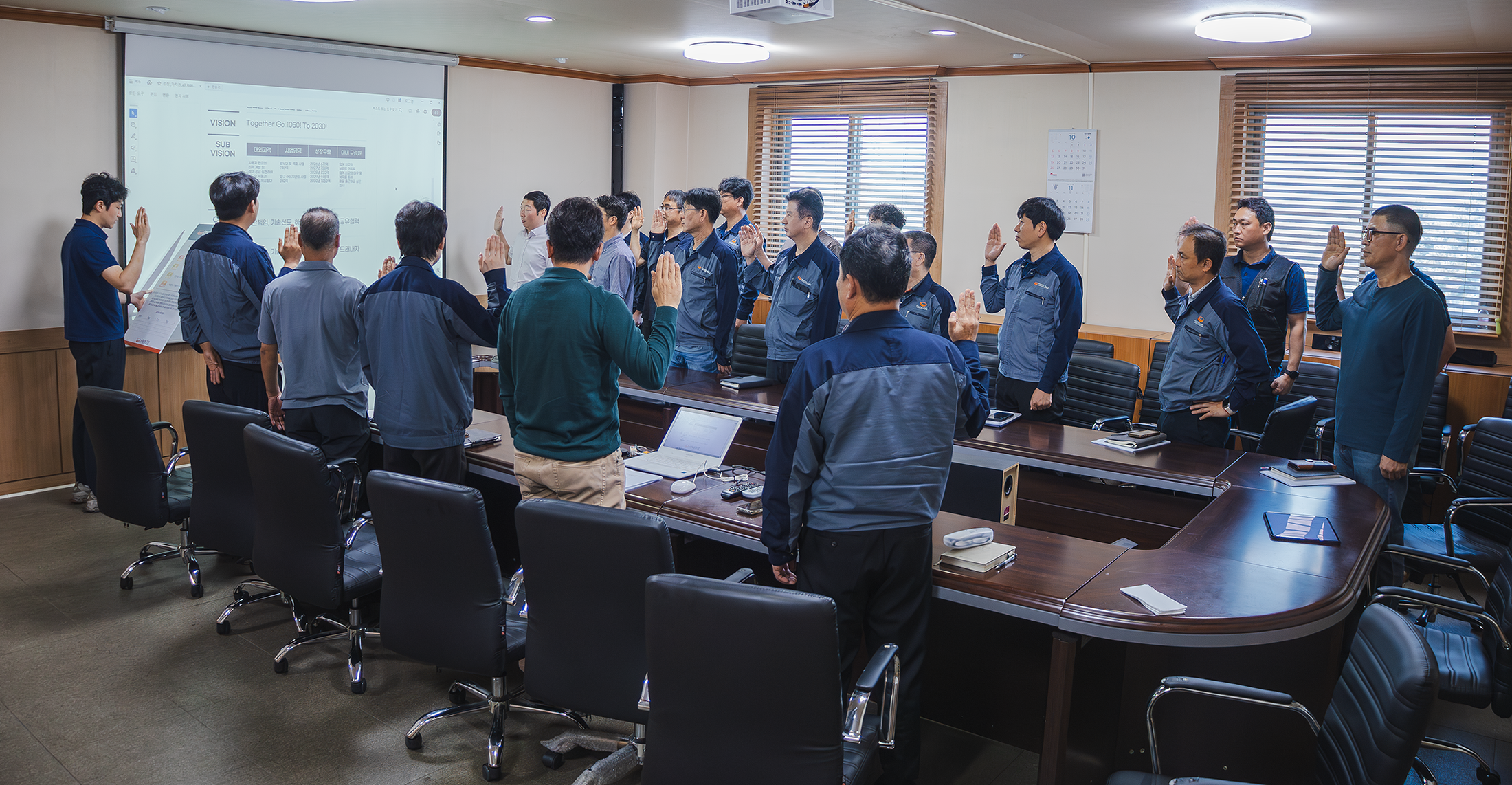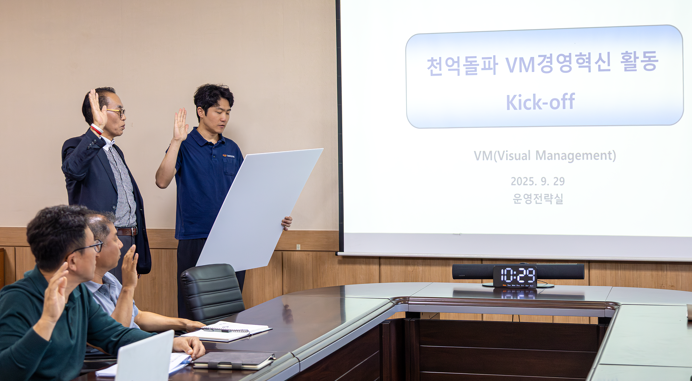 2025.09.29 3공장 대회의실에서 사장님, 정철화박사, VM사무국, 14개팀으로 구성된 각팀의 VM활동 리더가 참석하여 발대식을 진행했습니다.