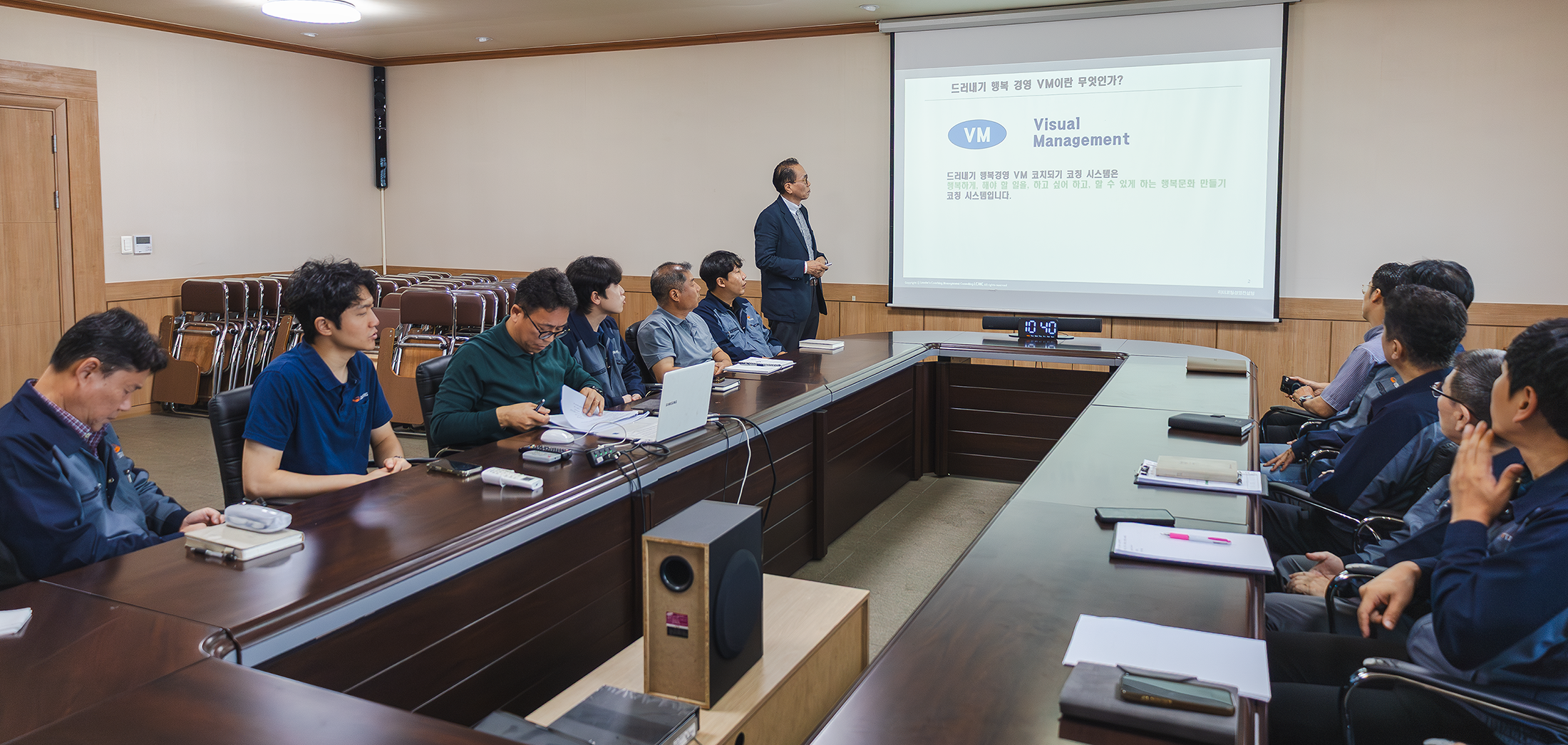 VM사무국장의 개회선언을 시작으로 유명덕 사장님의 VM경영혁신활동을 위한 당부말씀후 조직, 심사, 포상제도 소개가 있었고